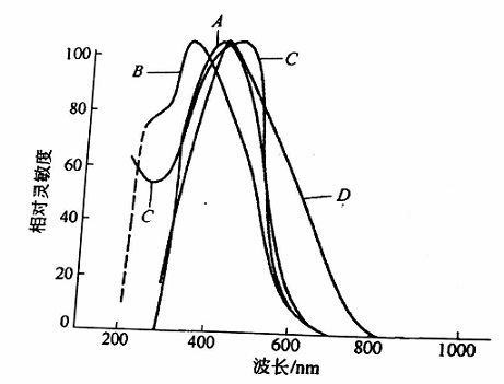由PMT所用的陰極及窗口所用的材料所決定PMT對(duì)于不同波長的光的靈敏度也是不一樣的。表示PMT的靈敏度隨波長而改變的曲線就叫做光譜特性曲線。圖中是常用的1P28型光電倍增管的光譜特性曲線。這種PMT的光陽極材料是銻和銫的化合物。由圖可以看出在340nm處有最大的靈敏度。各種型號(hào)的PMT的特性曲線可以在它們的說明書上找到。
