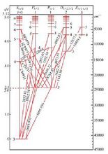 原子發射光譜法(AES),是利用原子或離子在一定條件下受激而發射的特征光譜來研究物質化學組成的分析方法。根據激發機理不同,原子發射光譜有3種類型:①原子的核外光學電子在受熱能和電能激原子發射光譜發而發射的光譜,通常所稱的原子發射光譜法是指以電弧、電火花和電火焰(如ICP等)為激發光源來得到原子光譜的分析方法。以化學火焰為激發光源來得到原子發射光譜的,專稱為火焰光度法。②原子核外光學電子受到光能激發而發射的光譜,稱為原子熒光(見原子熒光光譜分析)。③原子受到X射線光子或其他微觀粒子激發使內層電子電離而出現空穴,較外層的電子躍遷到空穴,同時產生次級X射線即X射線熒光(見X射線熒光光譜分析)。在通常的情況下,原子處于基態;鶓B原子受到激發躍遷到能量較高的激發態。激發態原子是不穩定的,平均壽命為10-10~10-8秒。隨后激發原子就要躍遷回到低能態或基態,同時釋放出多余的能量,如果以輻射的形式釋放能量,該能量就是釋放光子的能量。因為原子核外電子能量是量子化的,因此伴隨電子躍遷而釋放的光子能量就等于電子發生躍遷的兩能級的能量差 ,式中h為普朗克常數;c為光速;ν和λ分別為發射譜線的特征頻率和特征波長。